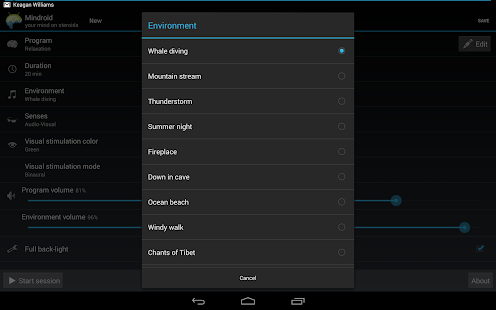 You are kindly welcome to use Mindroid for FREE if you are fine with the default setting. To take advantage of all the available programs and to mix them with the different environments, please consider purchasing the Mindroid Unlock for a minimal Play Store price. We will very much appreciate your contribution and use it for further improvements of this app. Please install the Unlock on top of the current installation (do not uninstall Mindroid).